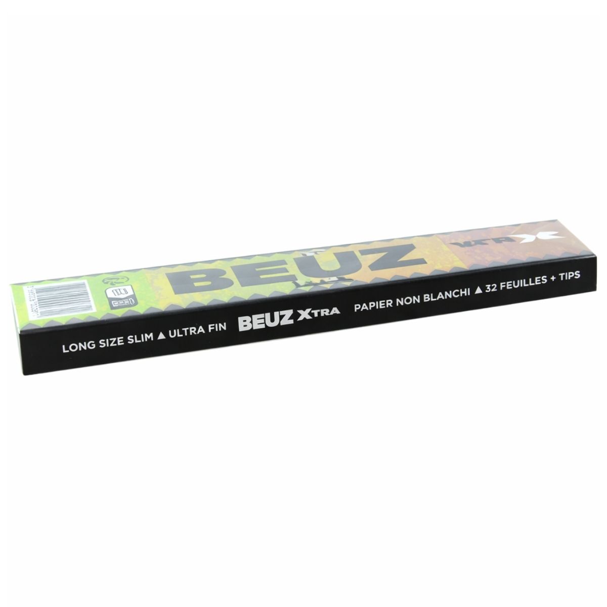 • 24 × Beuz Xtra Slim Long Brown Unbleached Rolling Paper Booklets (with tips)