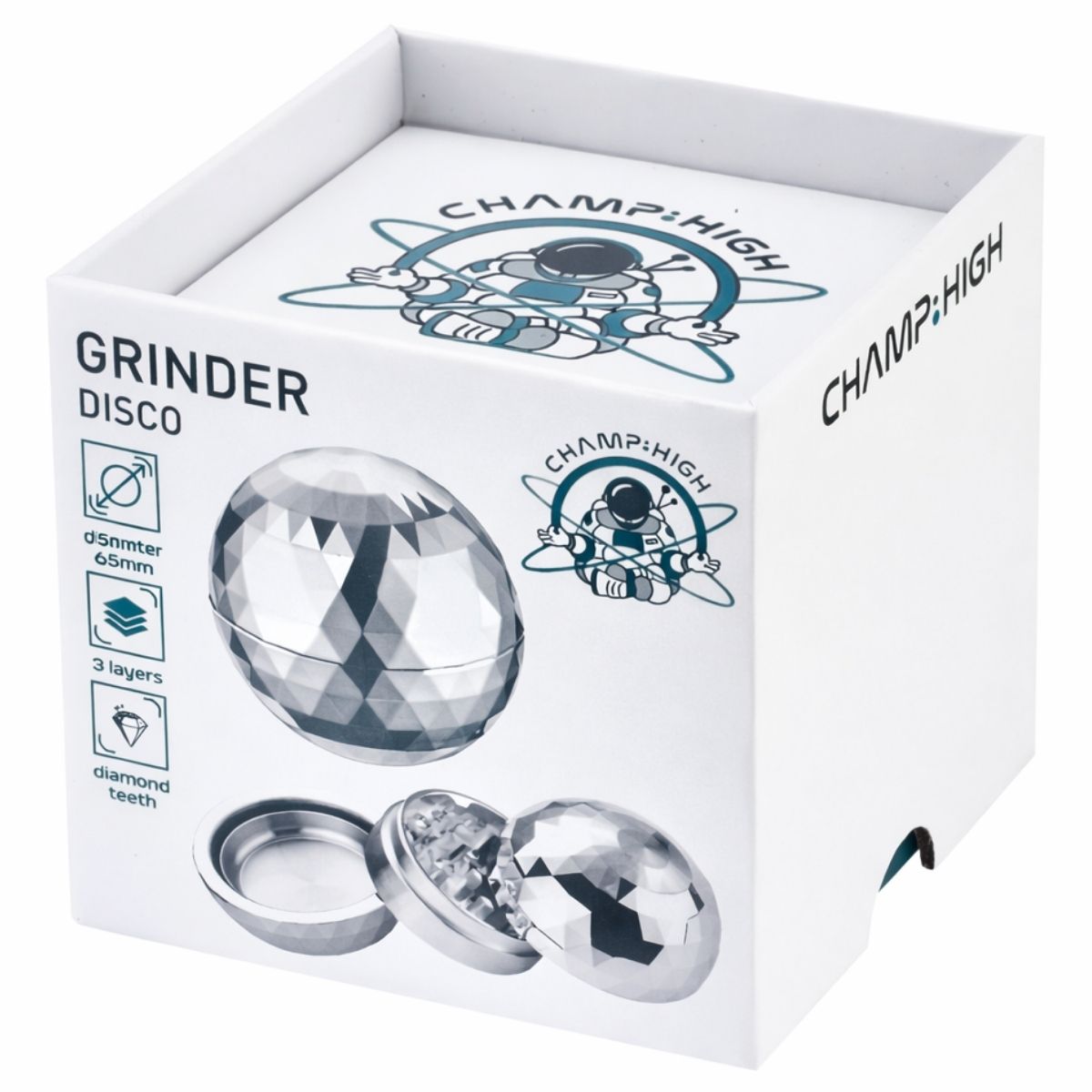 The Champ High Disco Grinder is a novelty grinding accessory designed for adult use smoking accessory markets. Inspired by classic disco ball aesthetics, this grinder features a reflective metallic exterior that delivers strong visual impact while maintaining reliable grinding functionality. Its decorative design makes it particularly well suited for lifestyle focused, novelty driven and display oriented retail environments.