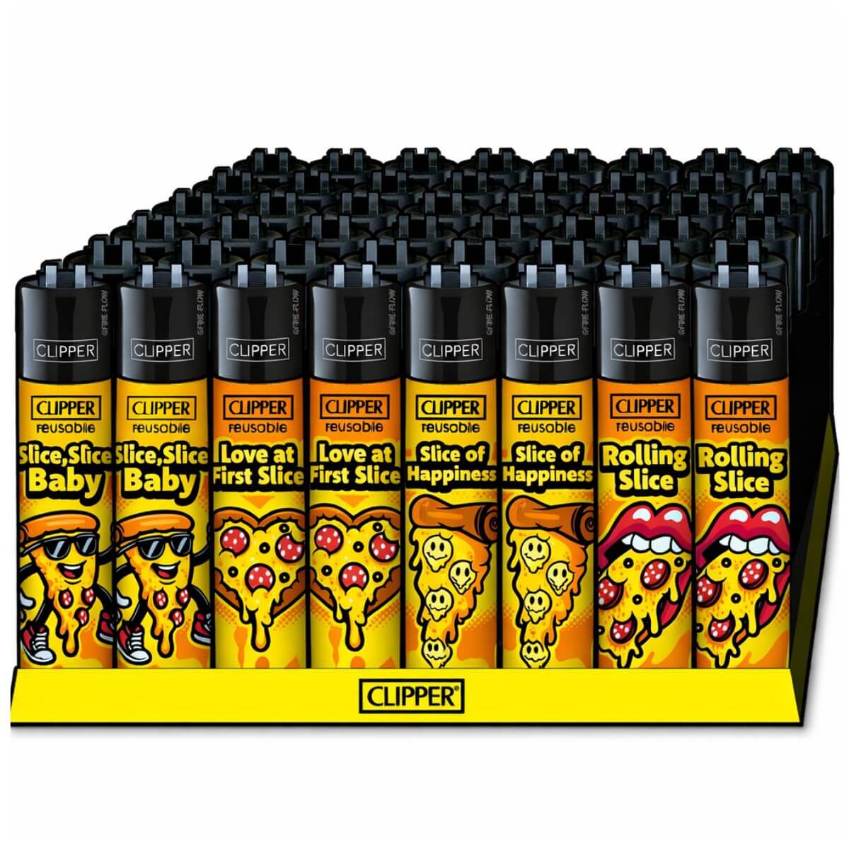 The Clipper Classic Large Pizza #2 Lighters are refillable ignition accessories developed for adult use smoking accessory markets. Built in the established Clipper Classic Large format, these lighters deliver durable construction and reliable ignition performance suitable for repeated everyday use. The Pizza #2 graphic series adds playful visual appeal while maintaining full compatibility with standard Clipper components and accessories.