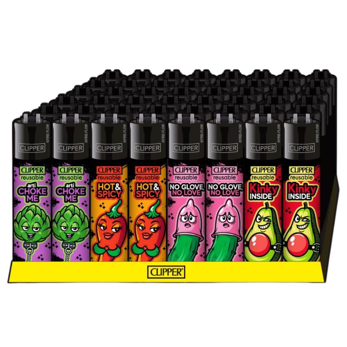 The Clipper Classic Large Porn Slogan #9 (48pcs/display) is a refillable lighter collection featuring novelty slogan-based designs within the recognizable Clipper Classic large format. Supplied in a 48 unit countertop display, this product is designed for high-volume retail environments and impulse purchase placement.