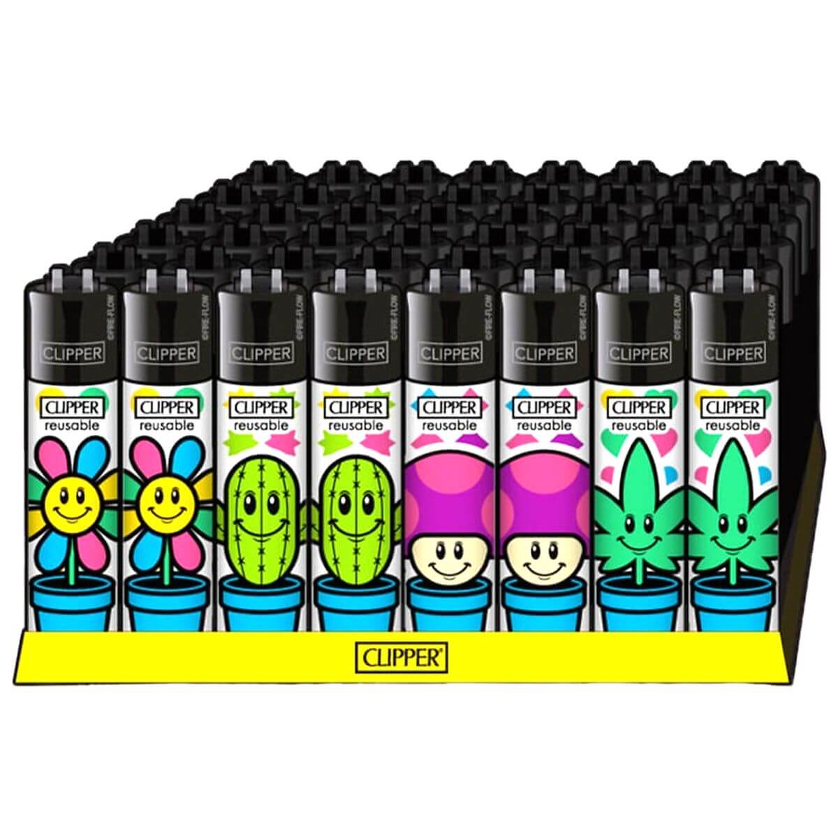 - 48 Clipper Classic Grow Pots refillable lighters in a single display box, ready for immediate retail presentation.