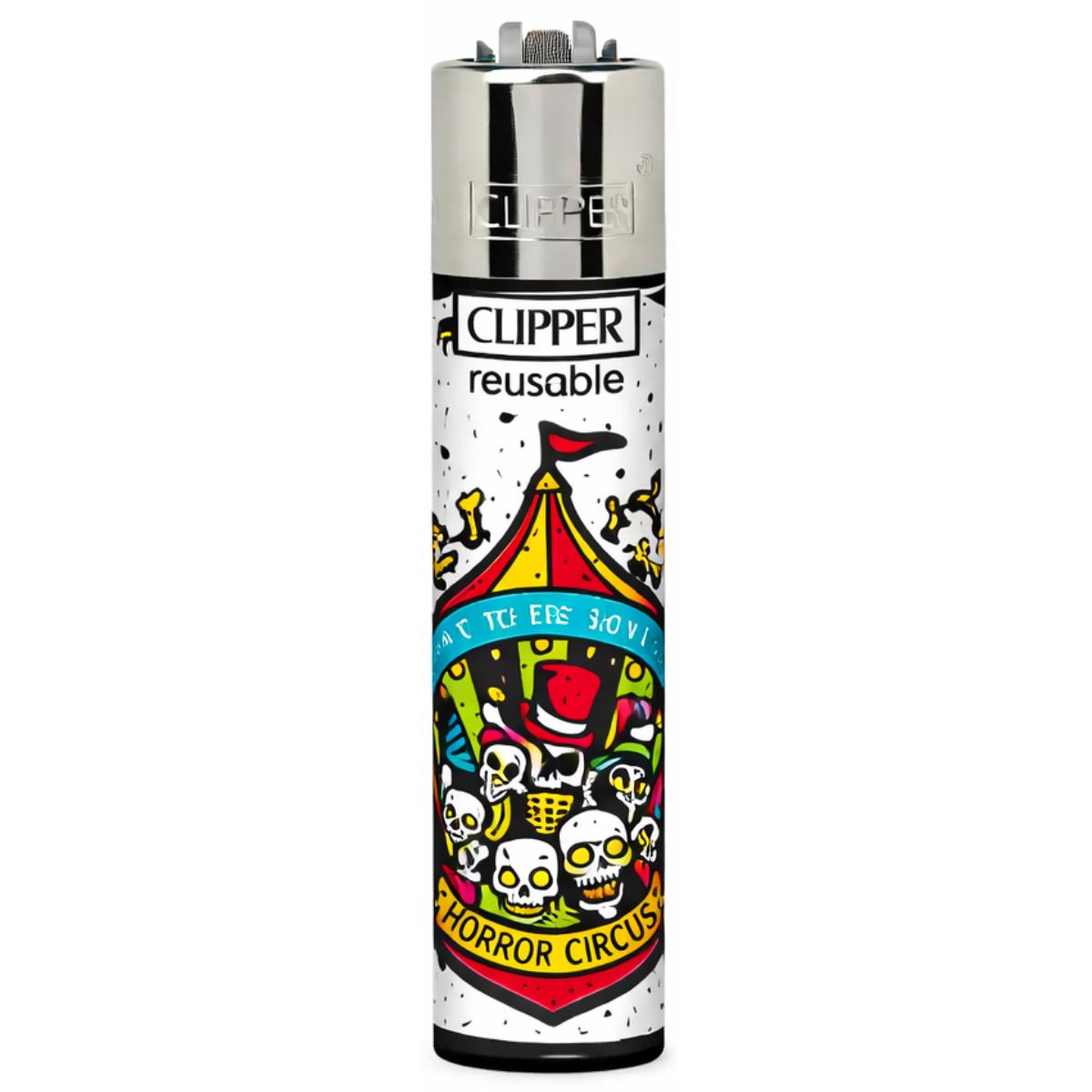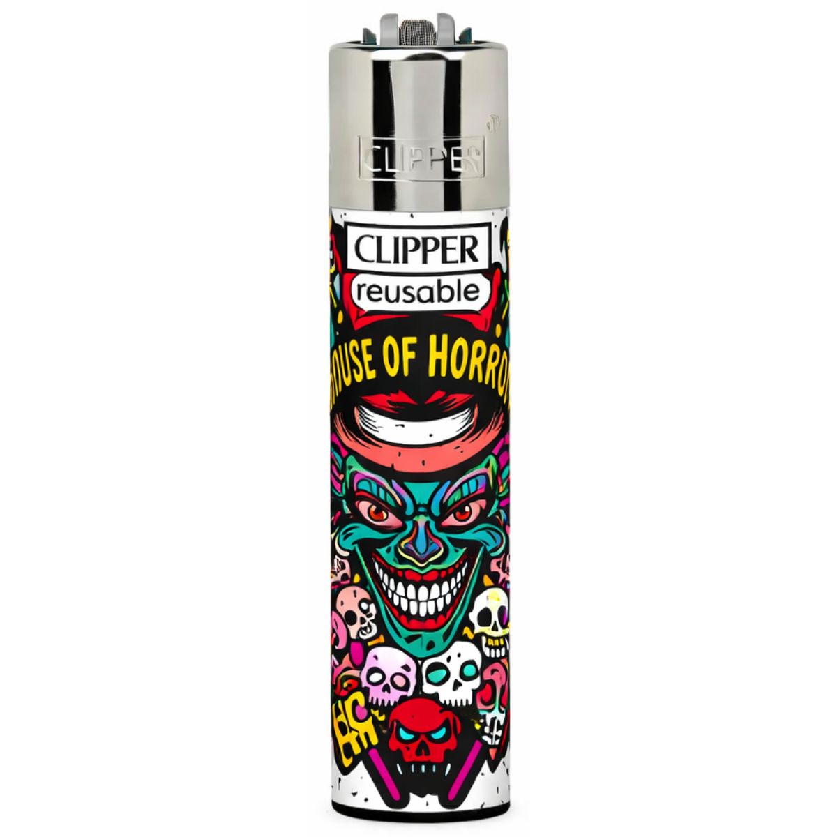 - Clipper Horror Days 2 lighters 24pcs display with horror themed designs.