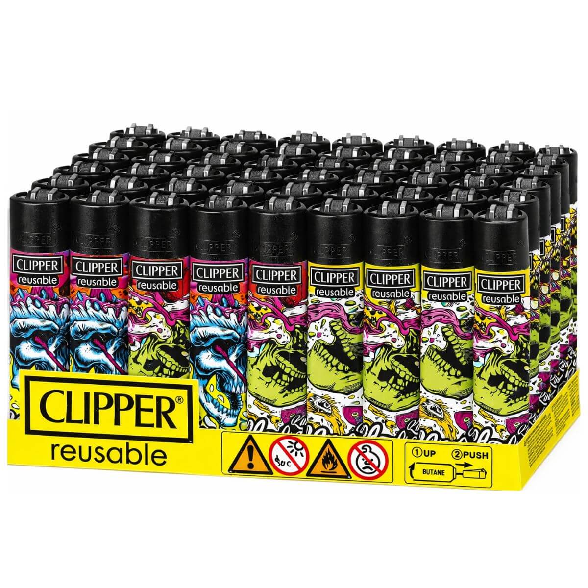 The Clipper Monkey King Lighters Skulls (48pcs/display) are a practical wholesale option for retailers and distributors serving the smoking accessories market across Europe. Built around the trusted Clipper lighter format and linked to the Monkey King range, this edition combines reliable functionality with bold skull-themed design appeal.