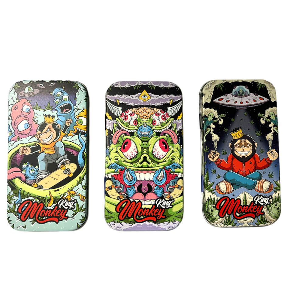 Not only does the Monkey King Tin Metal Box Space Edition offer visual appeal, but it also guarantees durability. Crafted from high-quality tin metal, this storage box ensures the safekeeping of your customers’ smoking accessories. Its sturdy construction makes it ideal for everyday use and resistant to wear and tear.