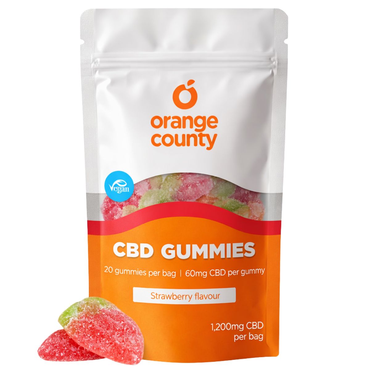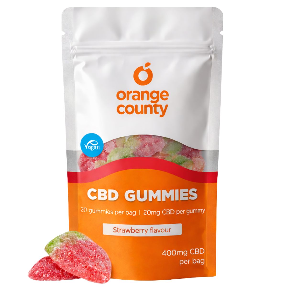 • 1 x Orange County CBD Strawberry Flavour Gummies Small Bag