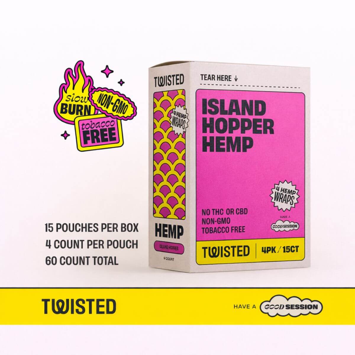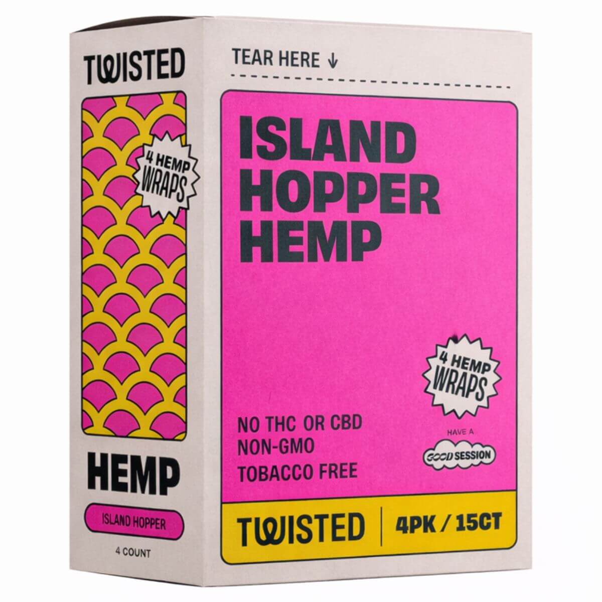 - 1 retail display containing 15 individually packaged Twisted Hemp Wraps Island Hopper variant