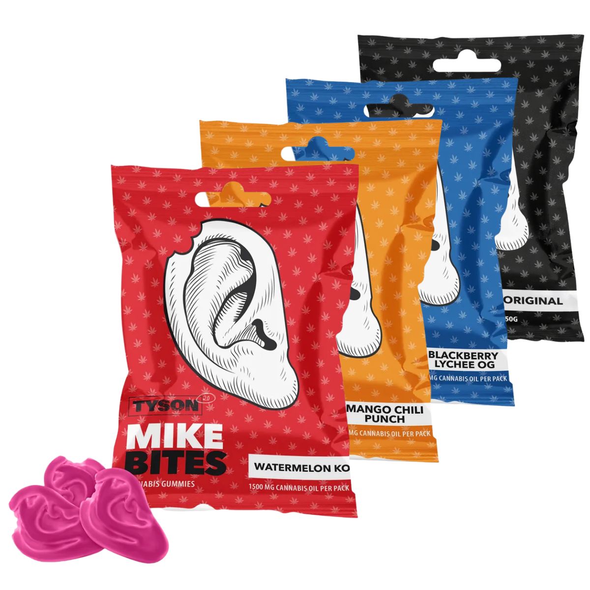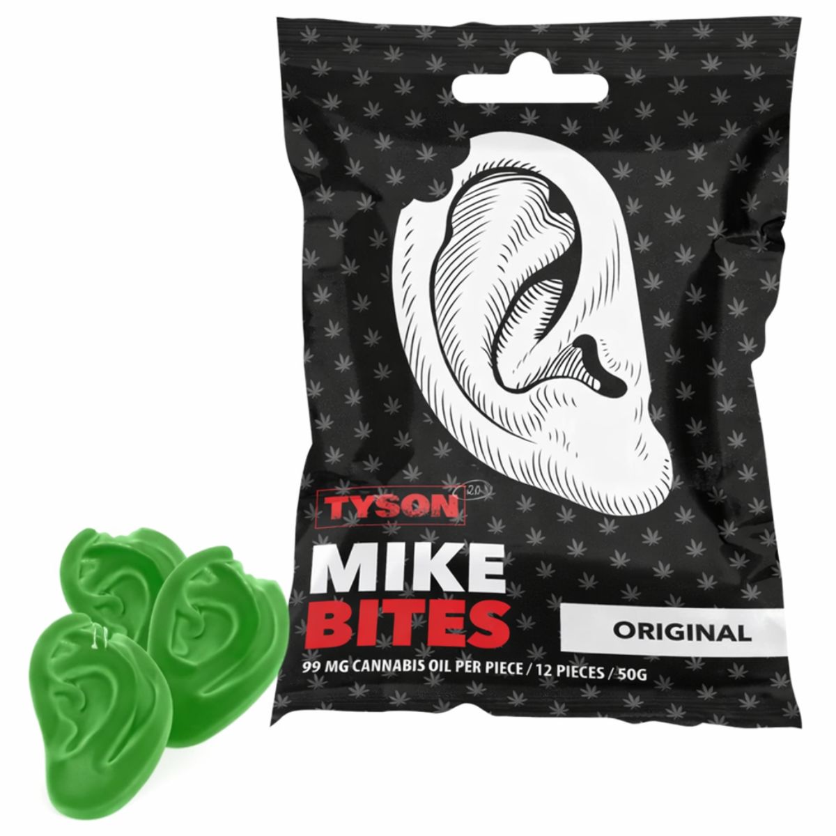 The Tyson 2.0 Mike Bites Gummies 12x50g Display is a confectionery product presented in individually packaged 50g bags and supplied in a 12 unit retail display. The gummies feature a distinctive ear-shaped design, creating a unique visual identity within novelty and lifestyle confectionery categories.